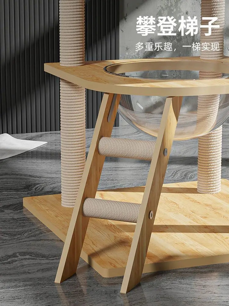 ```Arbre à Chat en Bois - Cabane Élégante pour un Foyer Raffiné