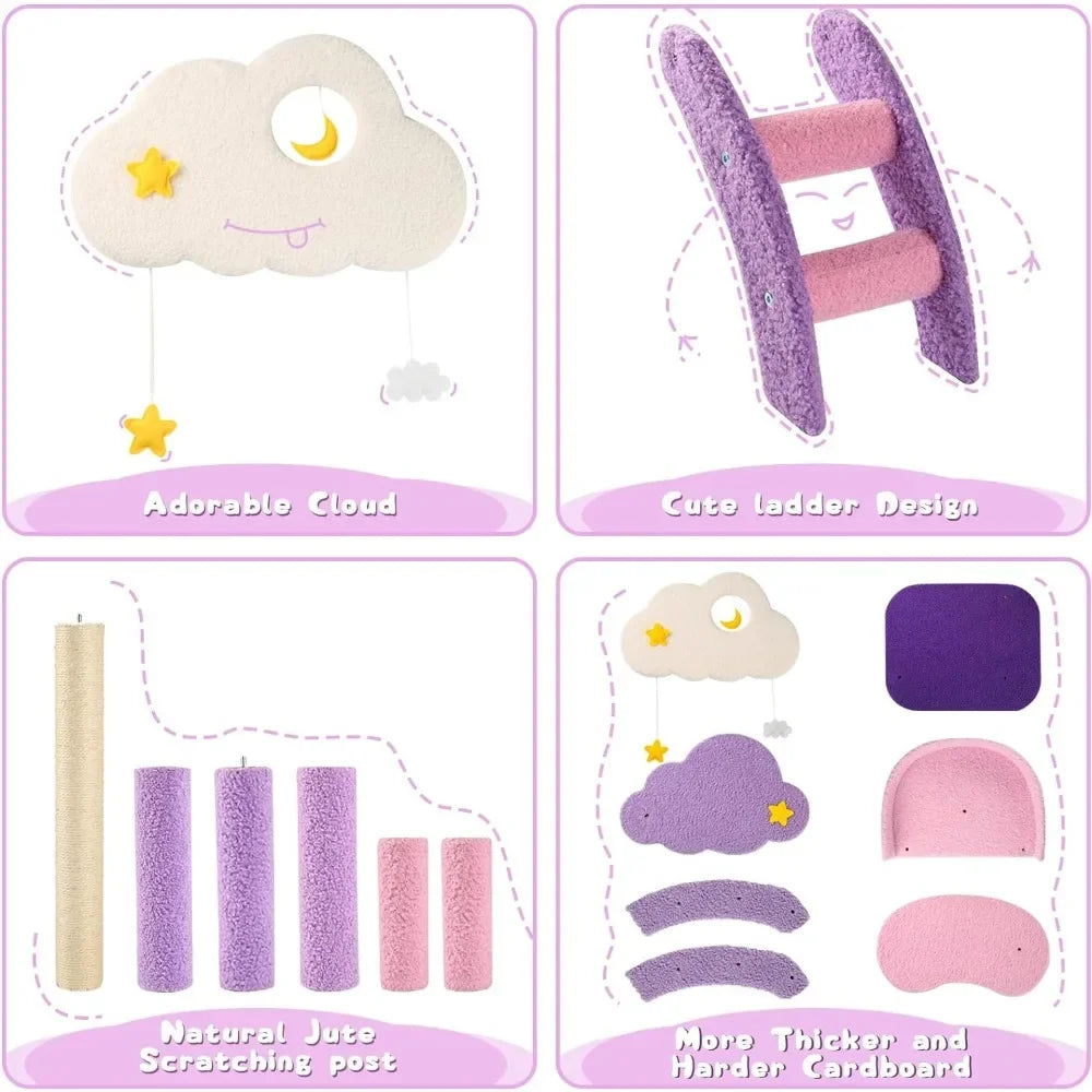 - Zones de Grattage : Des poteaux recouverts de sisal encouragent le comportement naturel de griffades, préservant ainsi vos meubles des griffures.