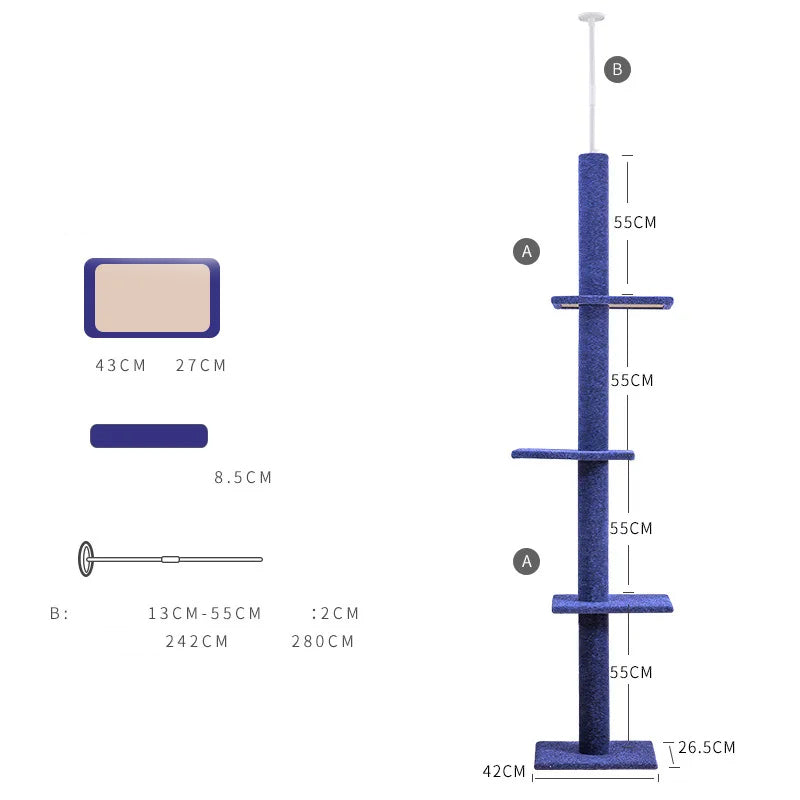 Arbre à chat Maine Coon ajustable du sol au plafond - Modèle : "SkyTower"