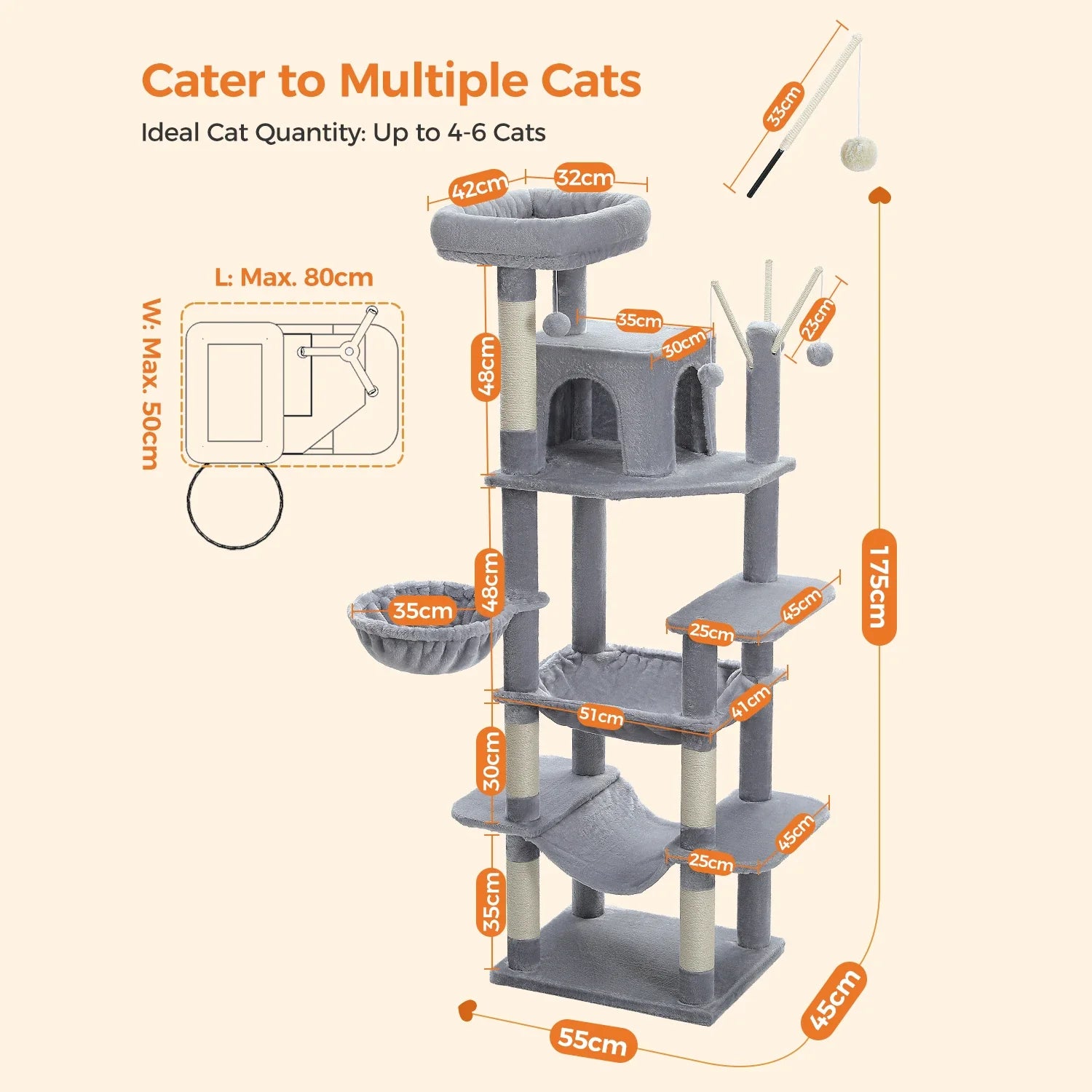 Arbre a chat maine coon multi-niveaux avec poteaux griffoir et hamac - Modèle : "FelineKingdom"